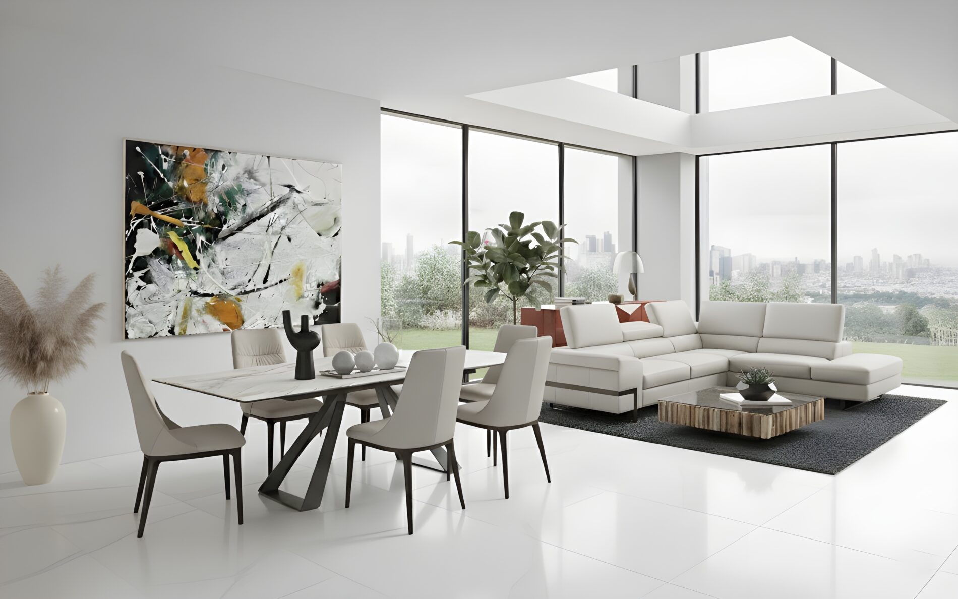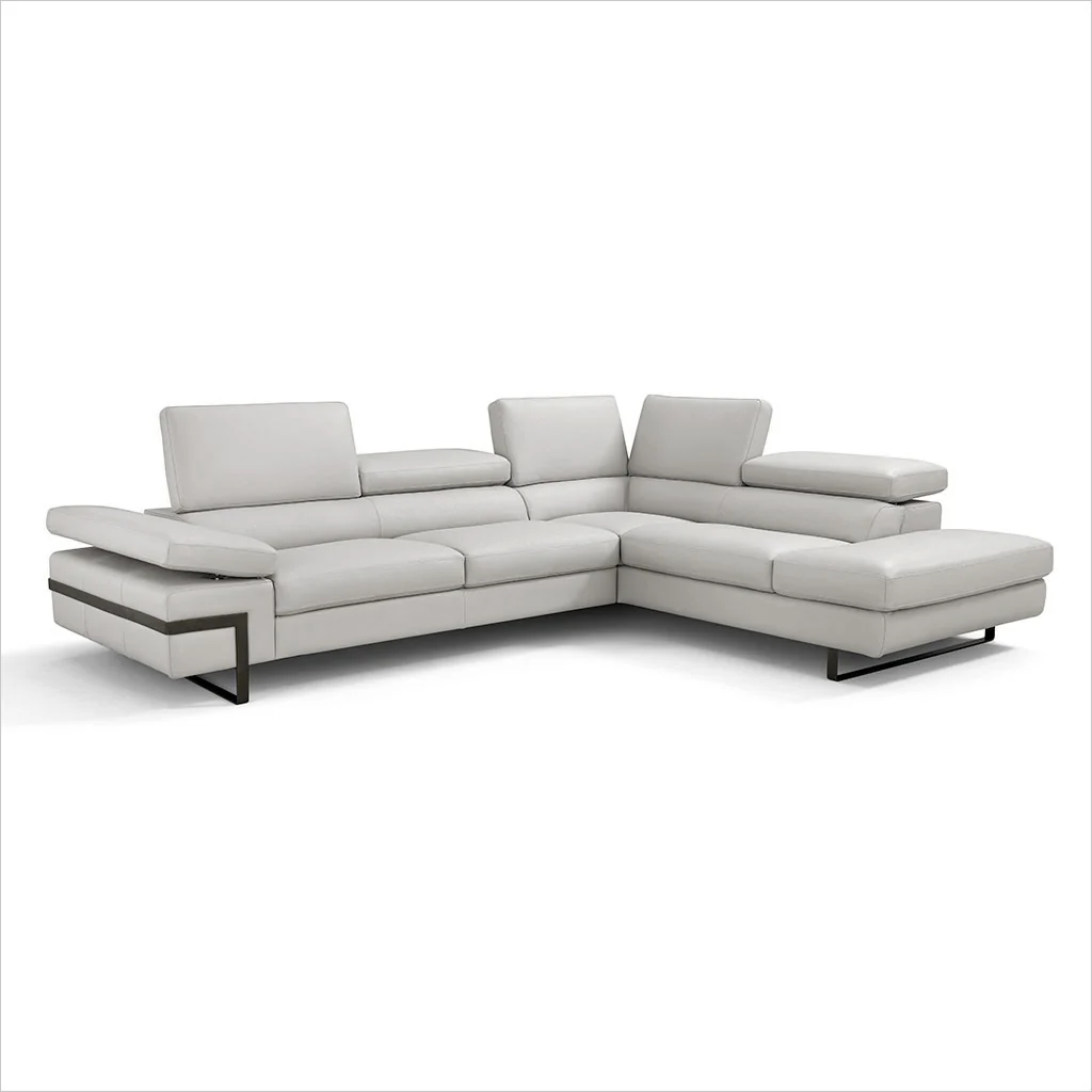 The Rimi Italian Leather Sectional not only has a gorgeous design, but is an extremely comfortable and high quality sectional! Wrapped in genuine top grain Italian leather (or fabric), this sectional features 5 adjustable headrests, and 1 adjustable arm. Bring comfort and elegance to your living room with the Rimi talian Leather Sectional! Metal can be stainless steel, black or gun metal color.