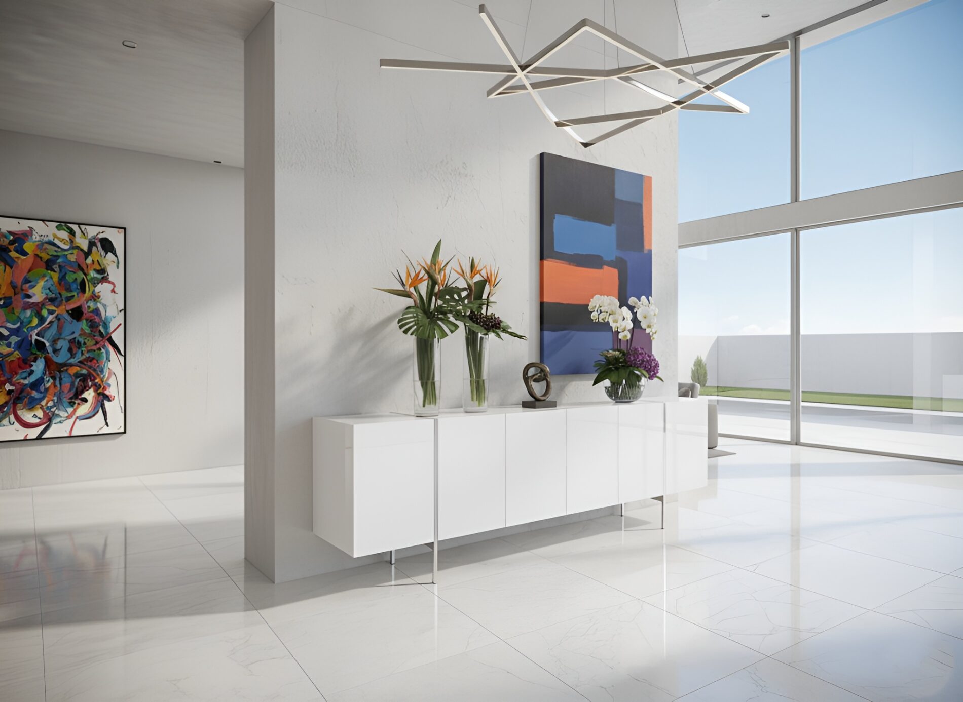 Part of the Cecilia Dining Collection, the buffet is available in two beautiful finishes: High Gloss White Lacquer and Walnut.