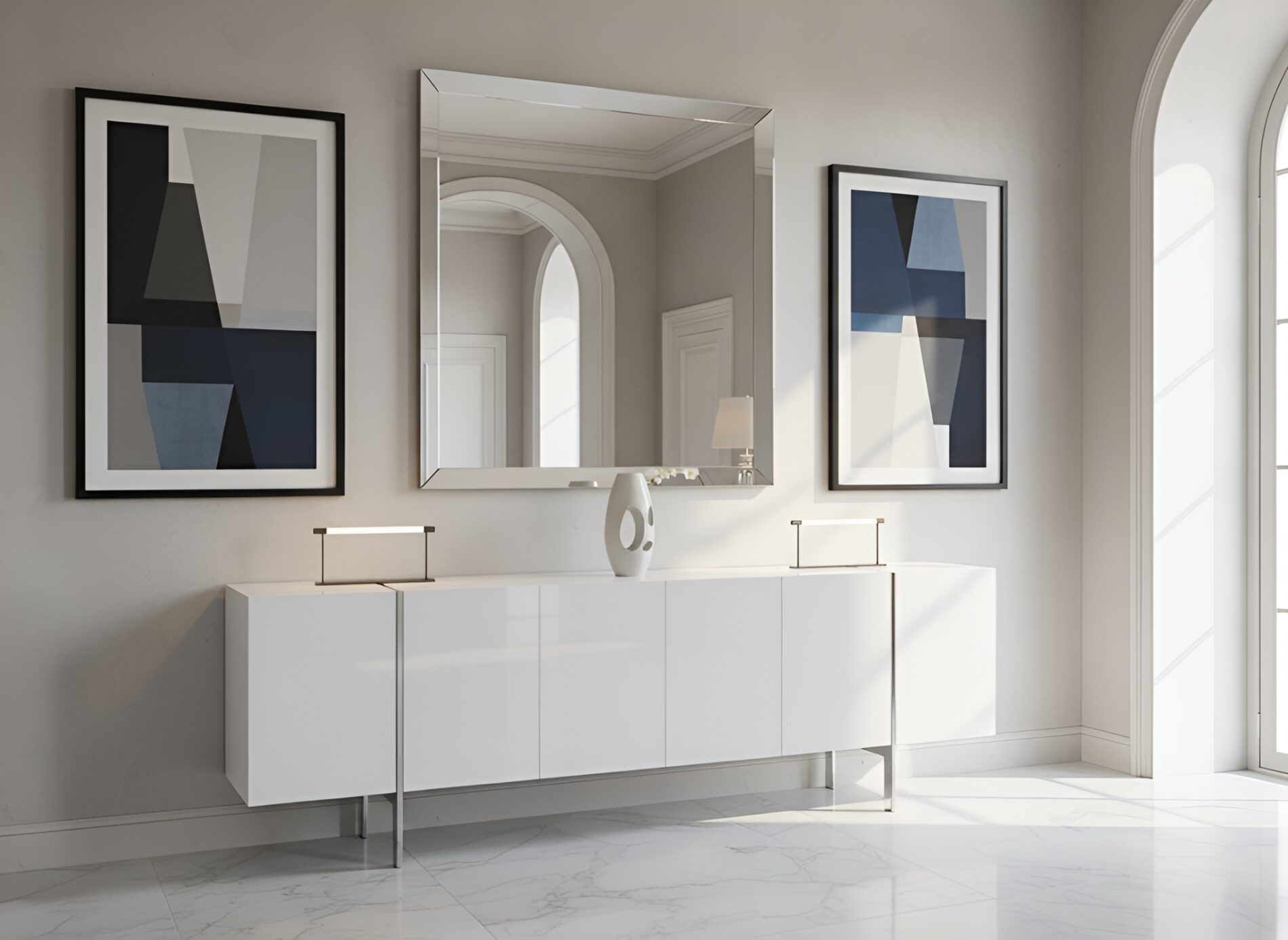 A smart blend of style and sophistication, the Cecilia Buffet is highly functional, featuring adjustable shelves and stainless steel legs.