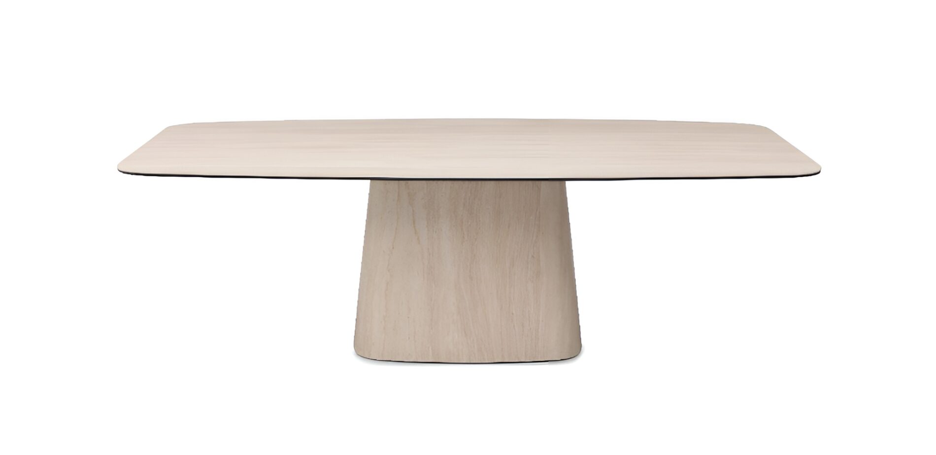 Upgrade your dining space with the Tufa Modern Ceramic Dining Table. This modern 78-inch table features a durable sand-colored porcelain marble top and a unique oval barrel pedestal base, creating a stunning focal point. Its matte finish provides a sophisticated, high-end look that’s built to withstand daily use. Perfect for families and entertainers, it comfortably seats up to 8 people.